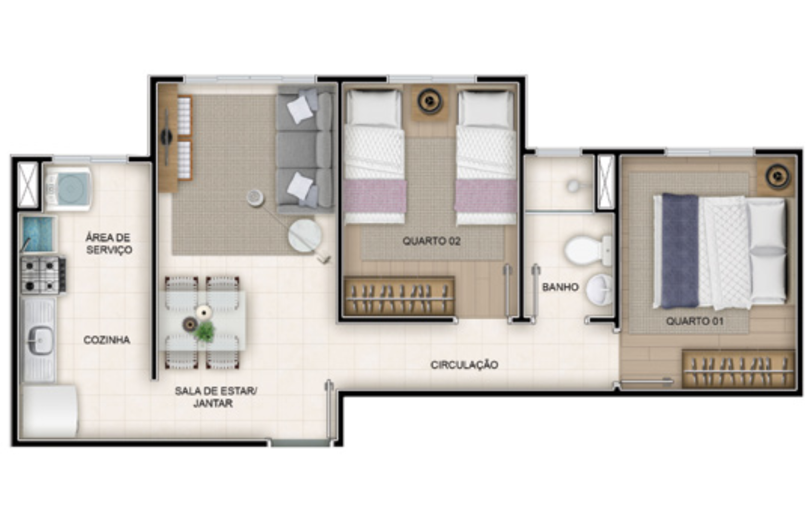 2 quartos(s)