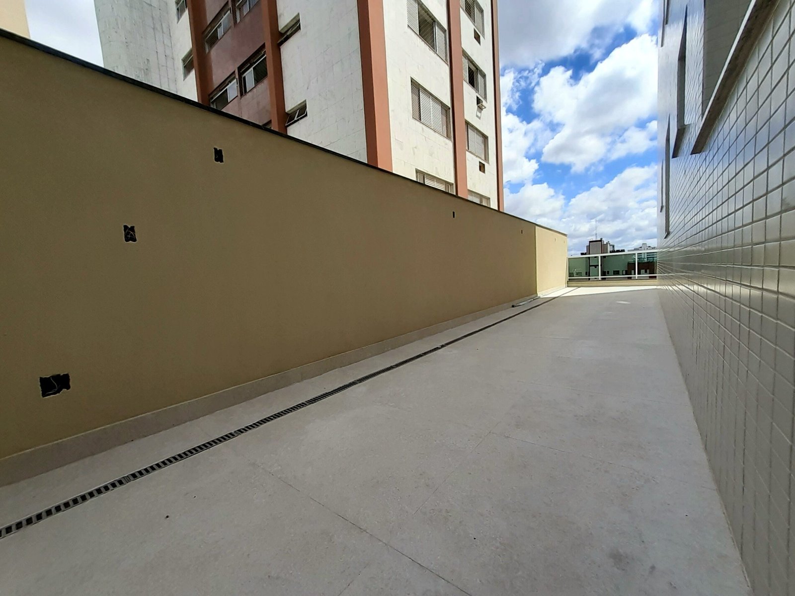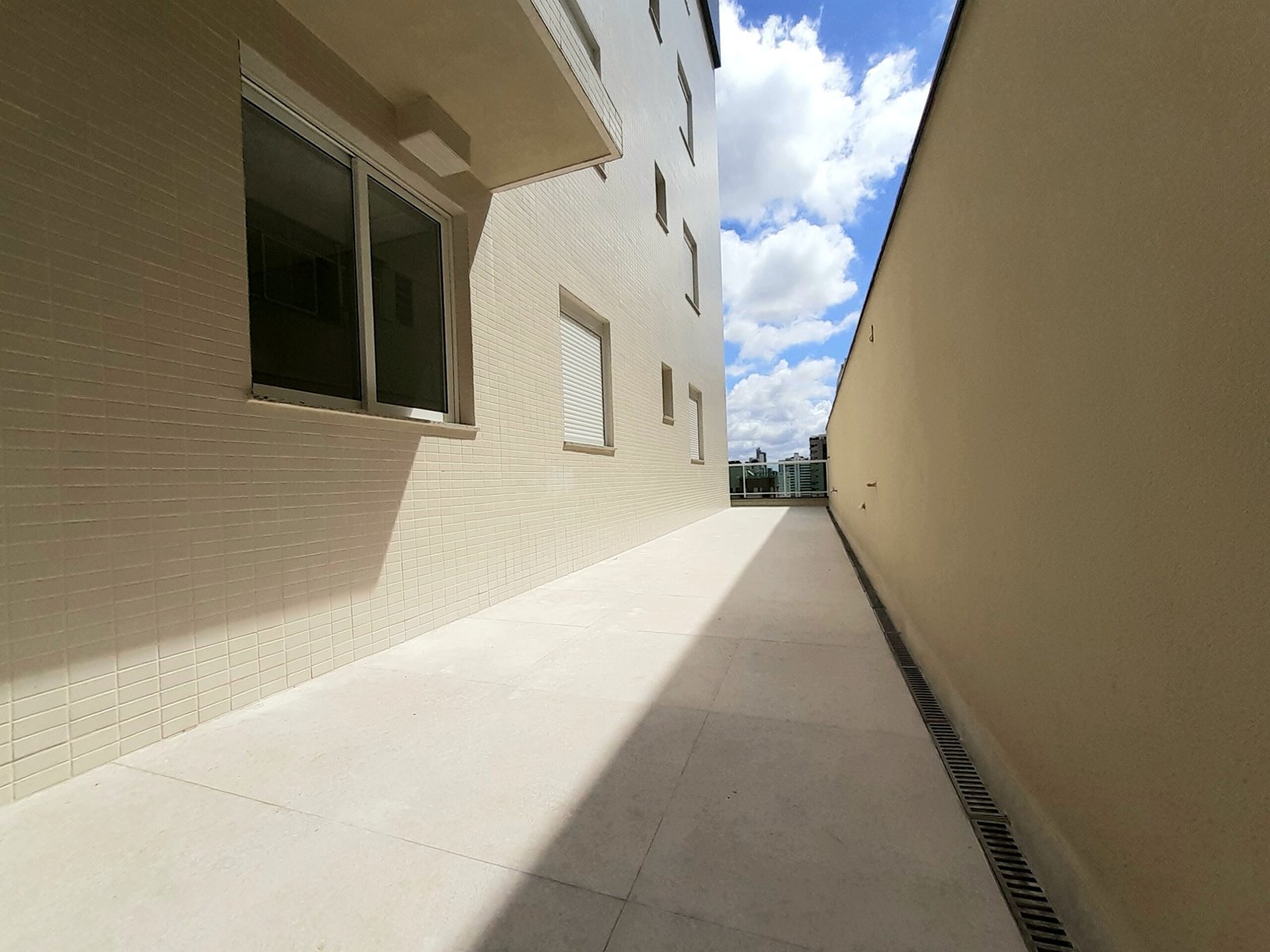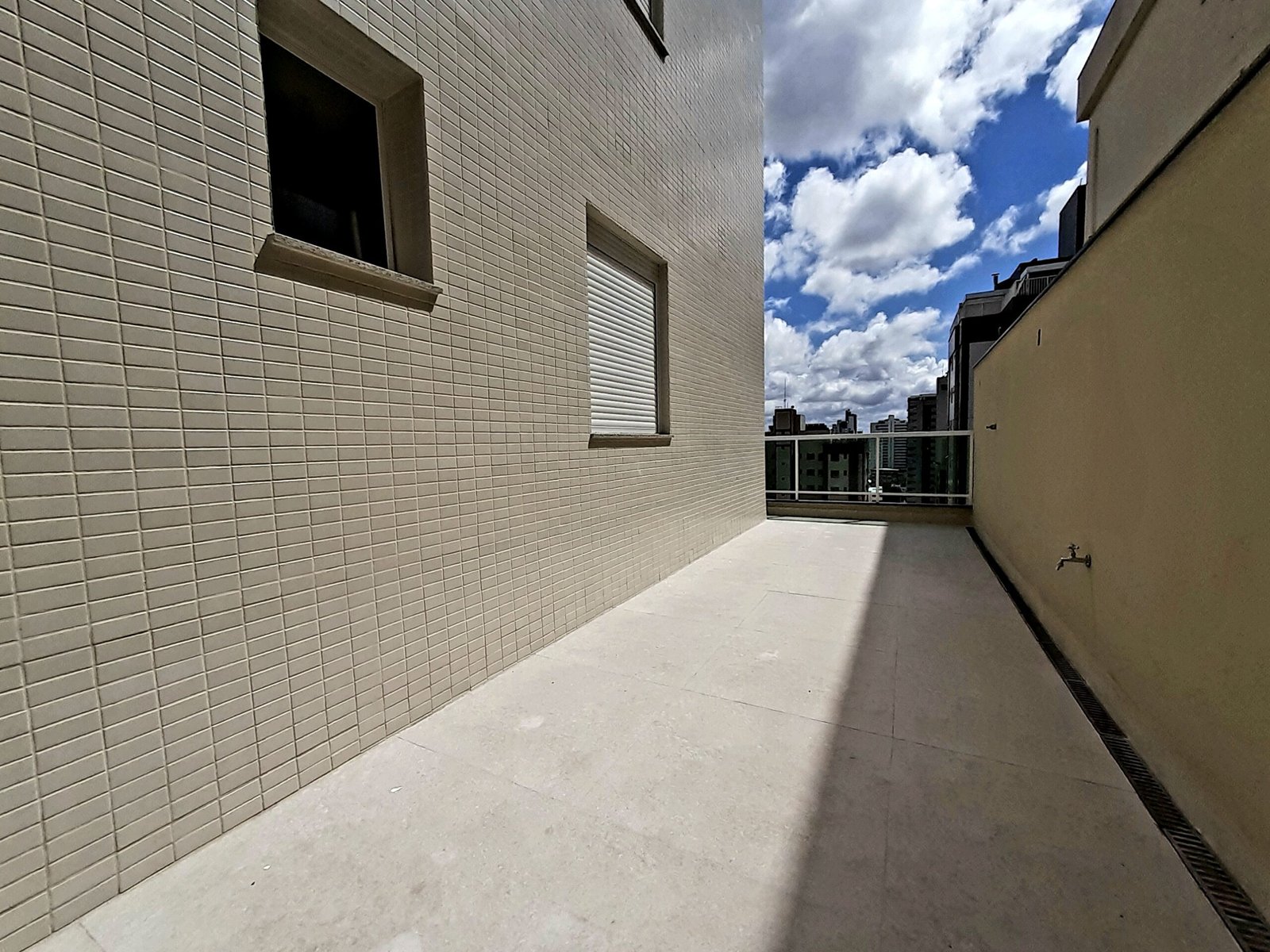 Apartamento com terraço privativo externo de 100m², mais 140m² de área útil construída, 4 quartos sendo 2 suites, cozinha americana, vista panorâmica e teto rebaixado. Um apartamento por andar e 4 vagas de garagem livres.