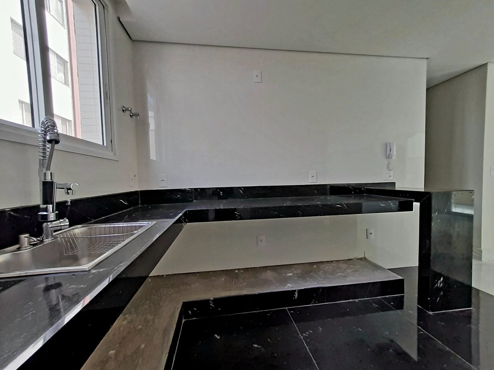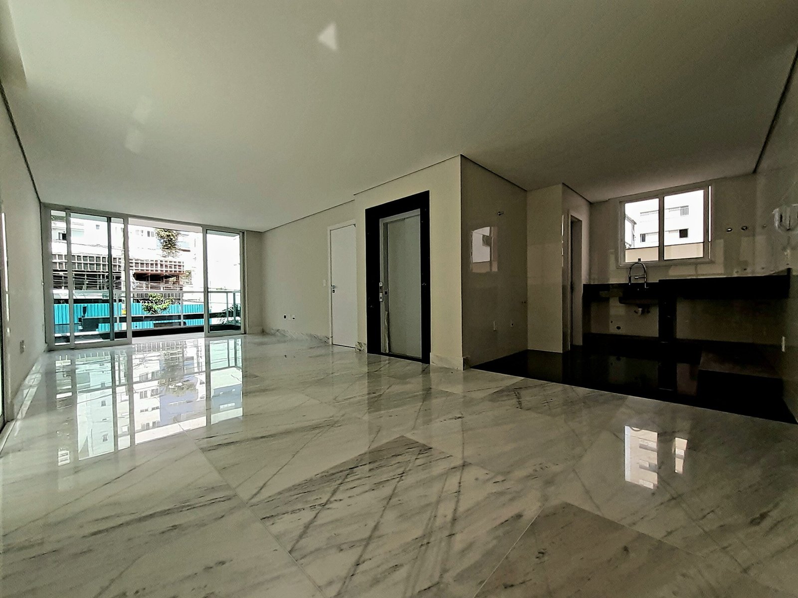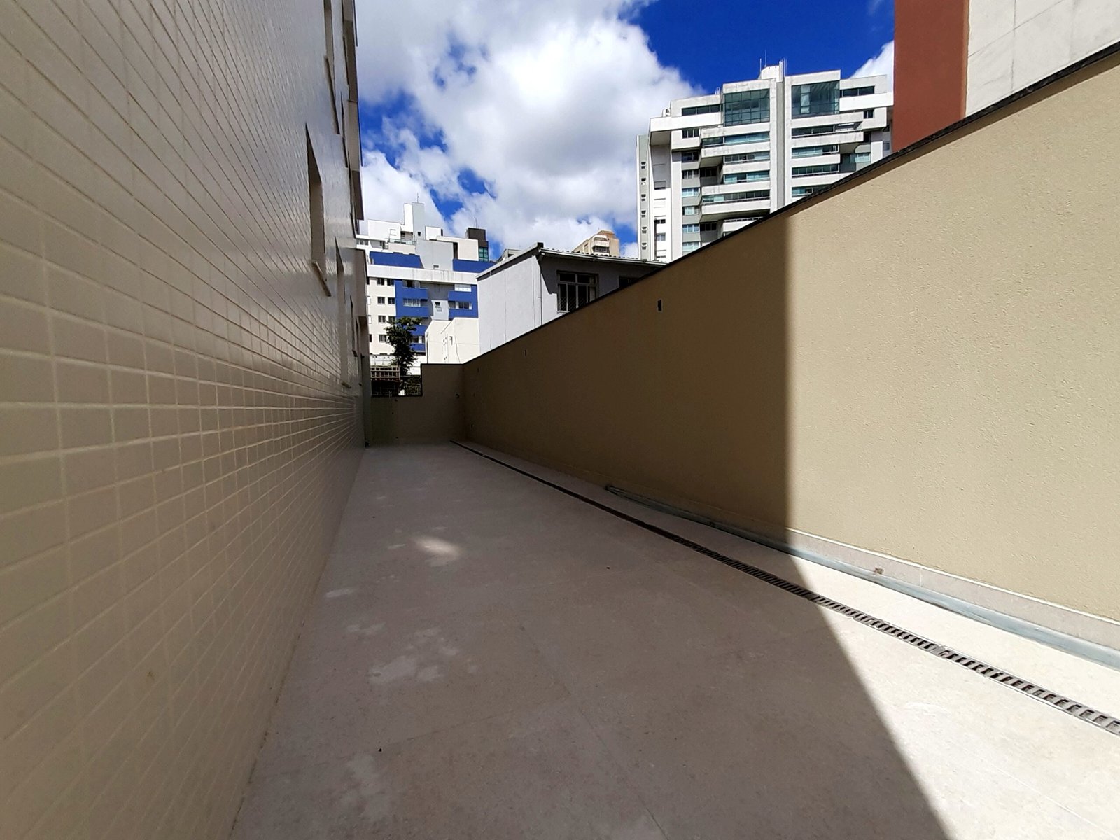 Apartamento com terraço privativo externo de 100m², mais 140m² de área útil construída, 4 quartos sendo 2 suites, cozinha americana, vista panorâmica e teto rebaixado. Um apartamento por andar e 4 vagas de garagem livres.