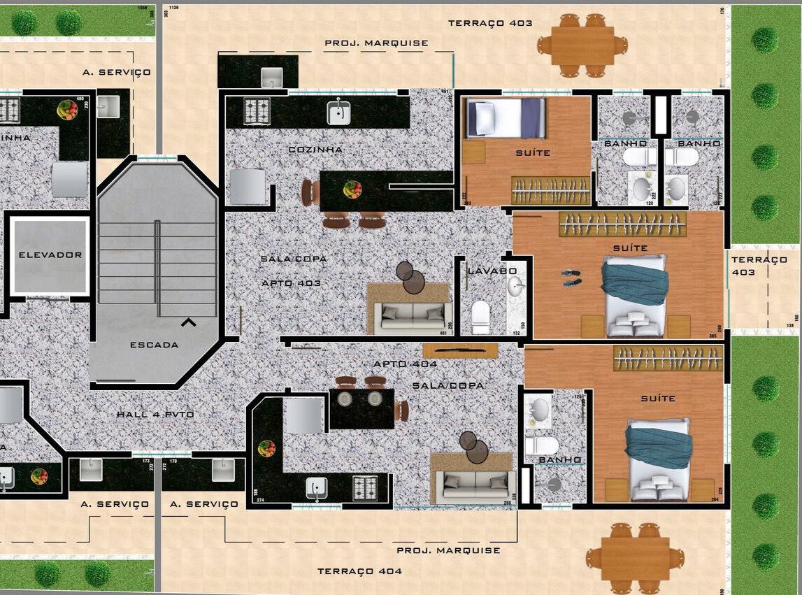 Apartamento com 52m² sendo 2 suítes, lavabo, mais 27m² de terraço descoberto privativo.