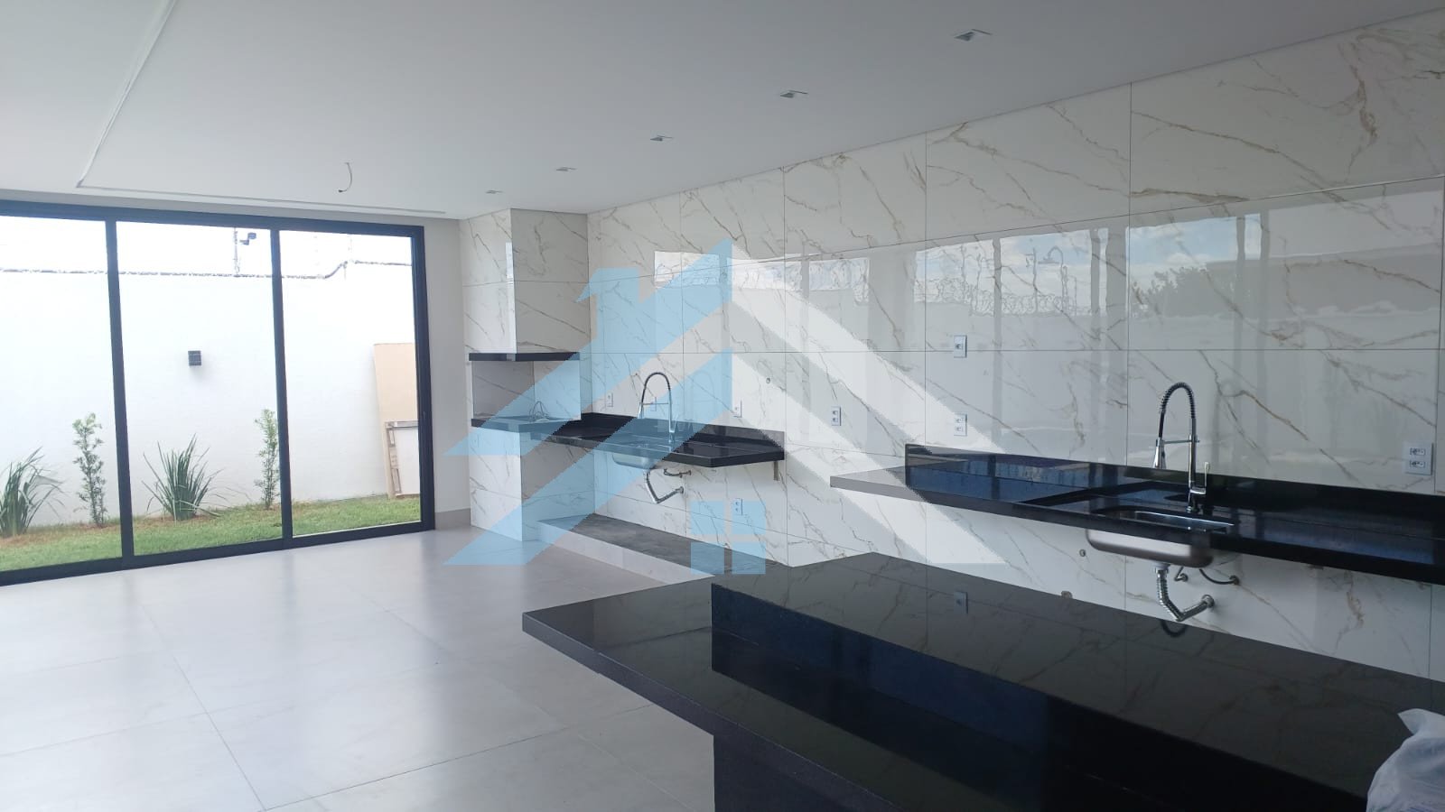 Cozinha com duas pias e uma ilha;