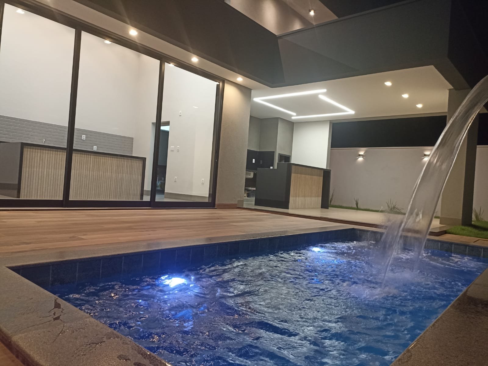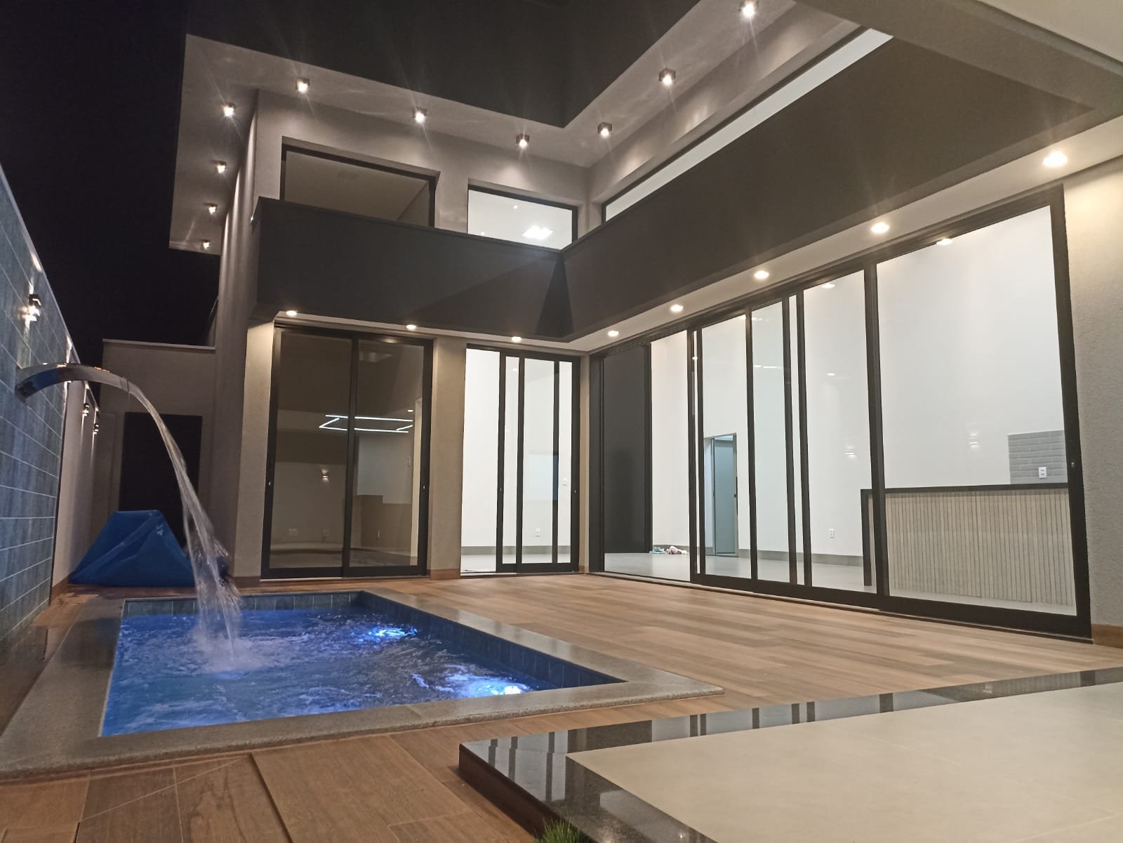 A casa tem 240 metros, sendo 03 suítes, a master com closet. Persianas automatizadas, sendo que na suite master é porta.