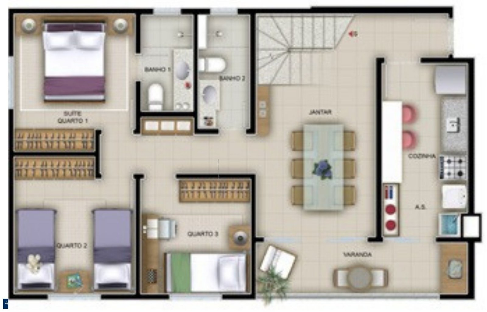 3 quartos(s)